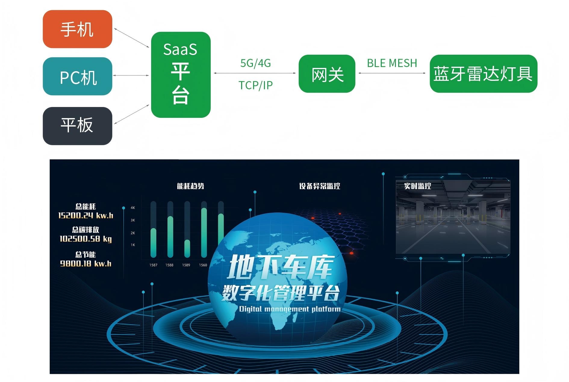 晶映 AI 能耗云照明 SAAS 系统支持:物业可通过手机 / 平板 / PC 端实时查看每根灯管的功率、亮度与运行状态,也能在办公室远程调节不同区域亮度(如 A 区 70% 降至 10%、B 区 80% 降至 20%),还能统计用电量、测算碳减排量,管理效率翻倍;