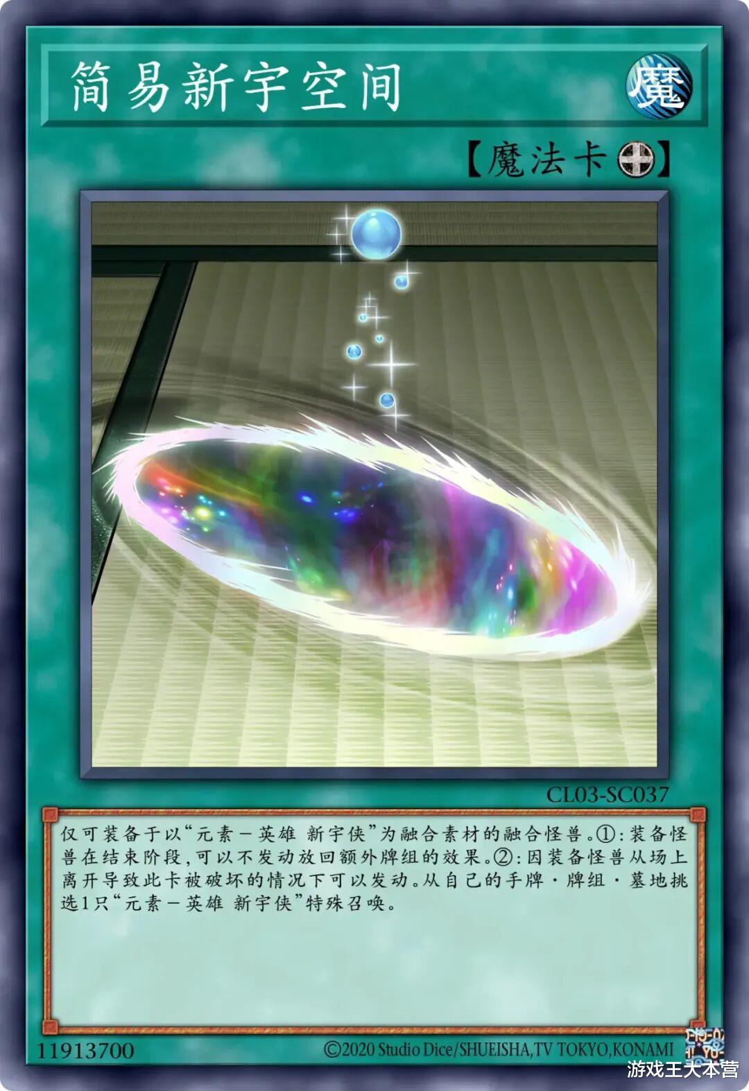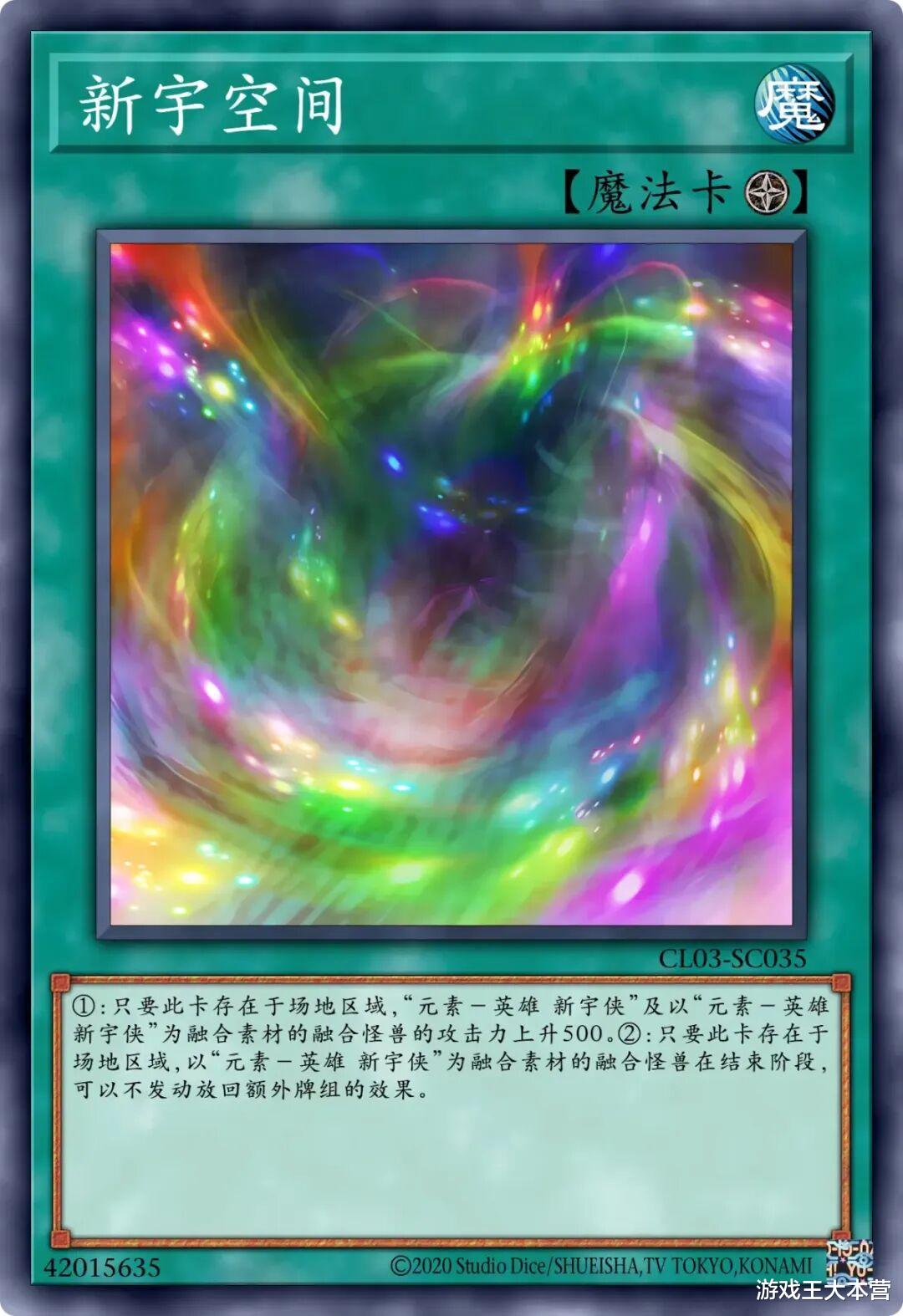 配合场地魔法「新宇空间」,让新空间怪兽在回合结束时回到手卡而非送去墓地,实现反复利用、持续召唤不同融合体,让卡组拥有极强的续航能力和场面变换能力,不会像传统英雄那样容易出现素材耗尽的问题。