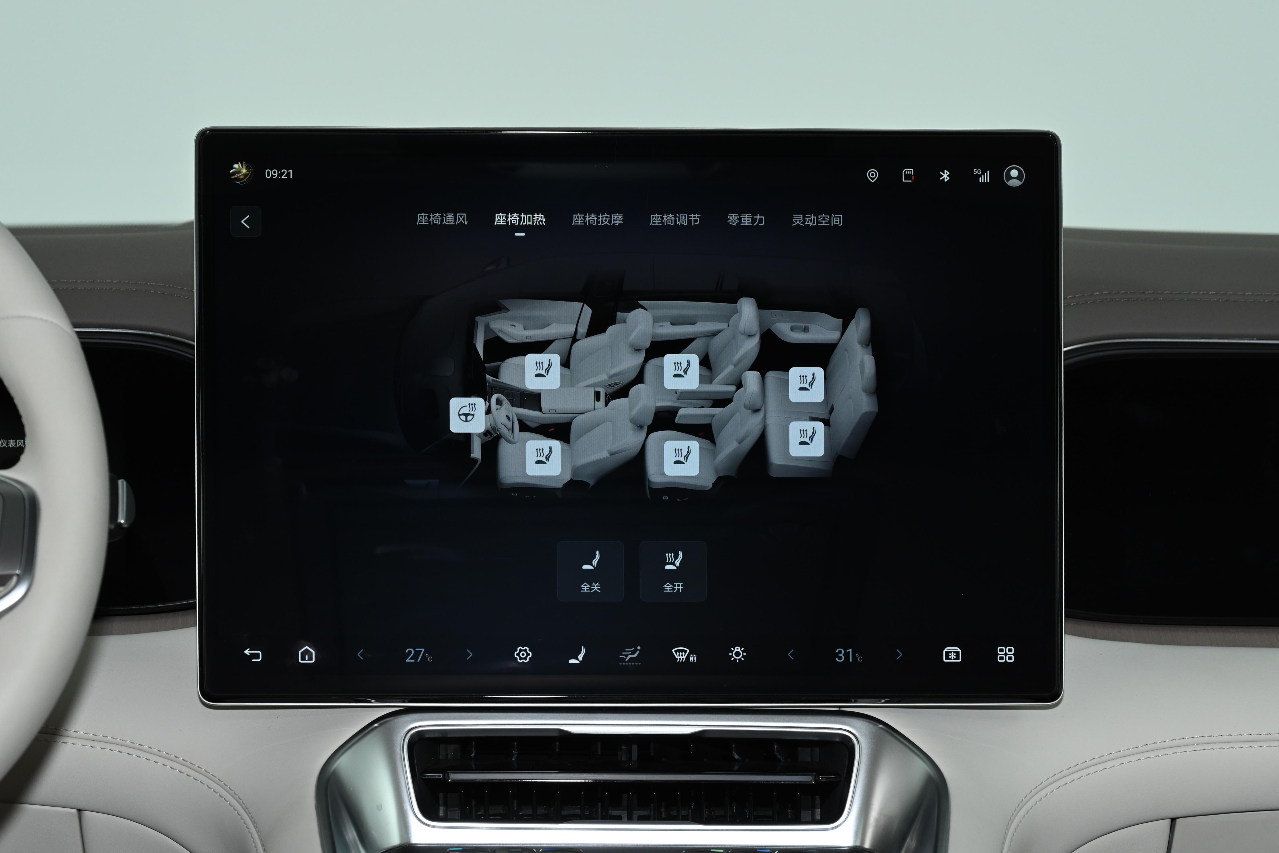 内饰的质感很到位,方向盘采用皮质材质,配备了加热功能,冬天开车再也不用忍受冰冷的方向盘了。中控台配备了13.2英寸的全液晶仪表和17.3英寸的中控屏,显示效果清晰,操作流畅。旗舰型还配备了13.2英寸的副驾驶屏幕和17.3英寸的后排液晶屏,长途出行时能很好地打发时间。车机系统搭载的是DiLink系统,支持HUAWEI HiCar和Carlink手机互联映射,语音识别控制系统的表现也很出色,支持免唤醒和分区域唤醒,日常操作很方便。材质方面,车内大面积采用了软性材质包裹,搭配128色的车内氛围灯,提升了整体的豪华感。