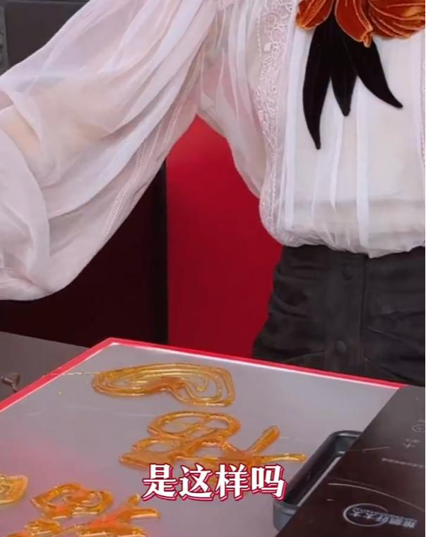 虽然如今俪姐已经40多岁,但是她保养得依然不像,显得非常年轻,而这条视频中,俪姐似乎是在体验我们的传统文化,糖画。