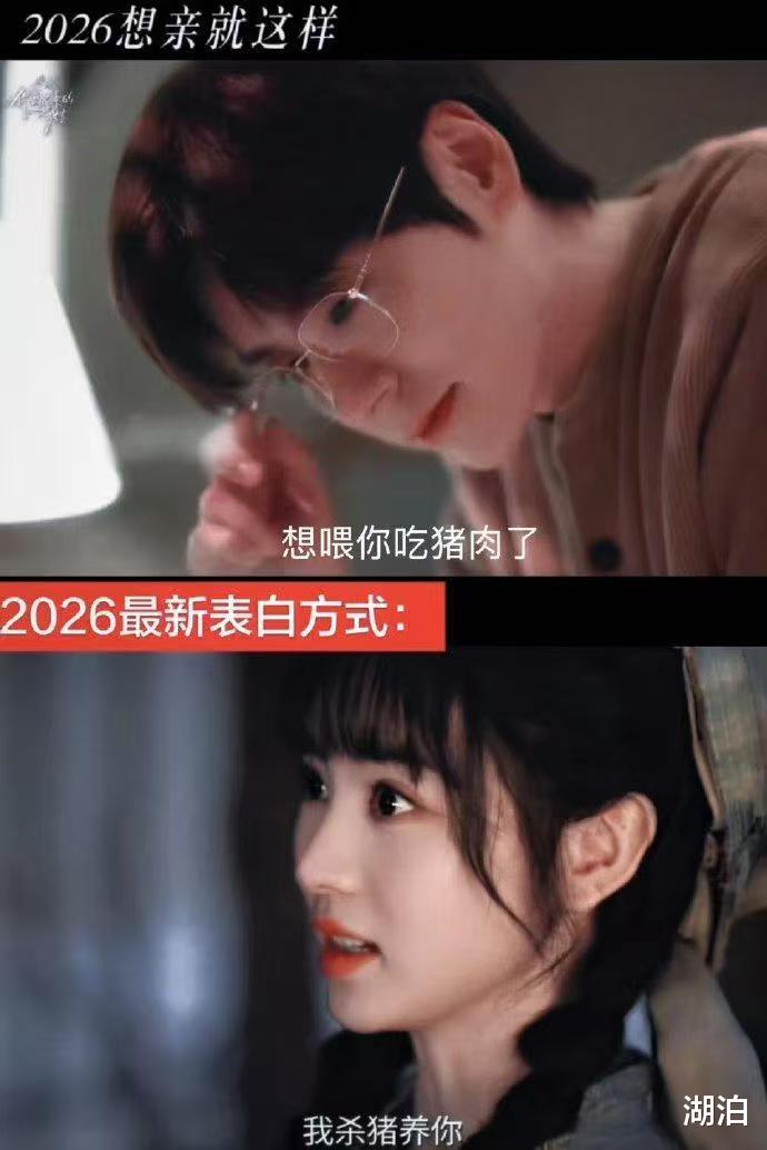 而且你发现没?这两个梗能火,本质上是观众对"悬浮式甜宠"的集体反叛。比起动不动"承包鱼塘""买下整条街"的偶像剧台词,"杀猪养你"和"喂你吃猪肉"反而因为够土、够接地气,直接杀出了一条差异化赛道。观众不吃糖衣炮弹了,但吃猪肉。