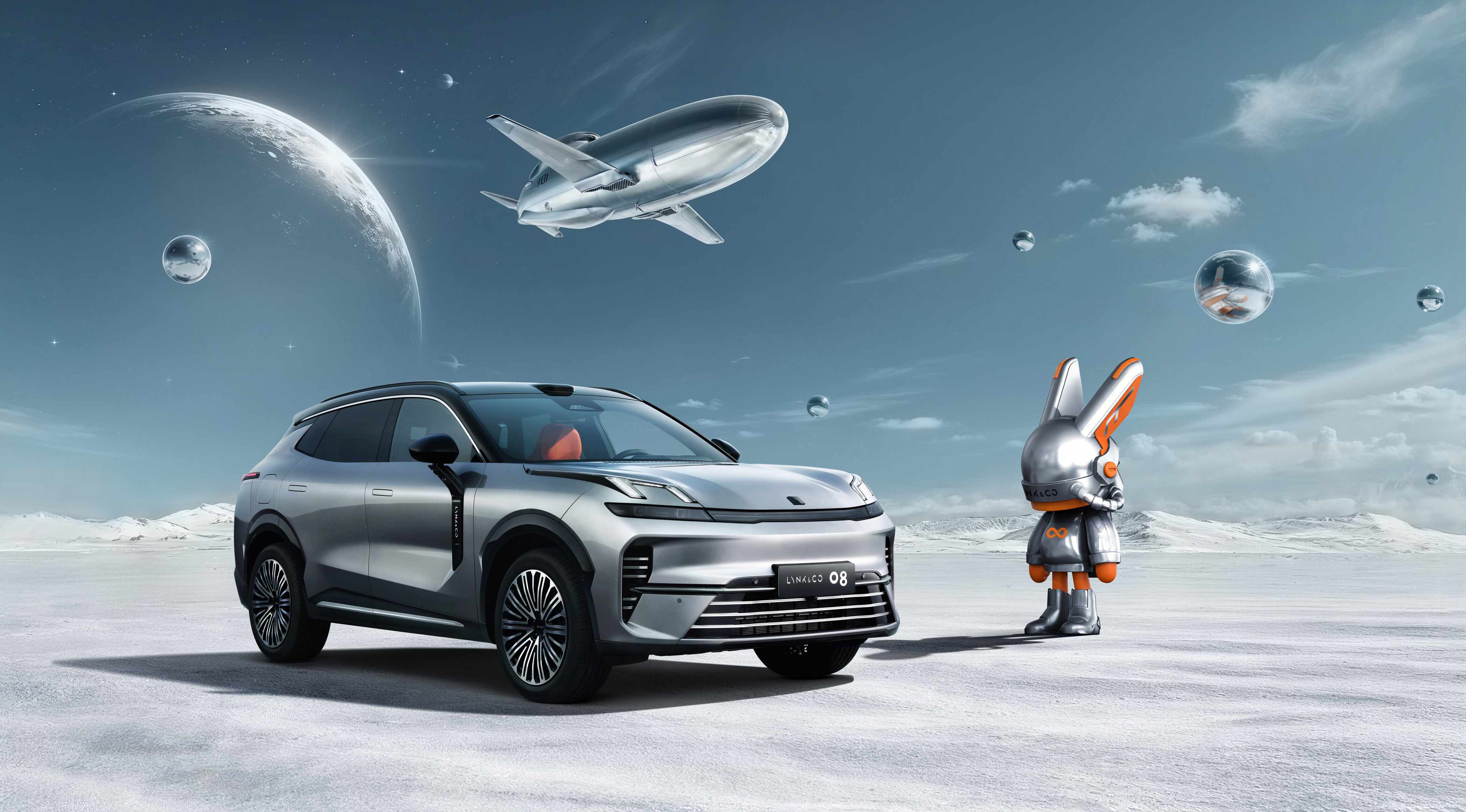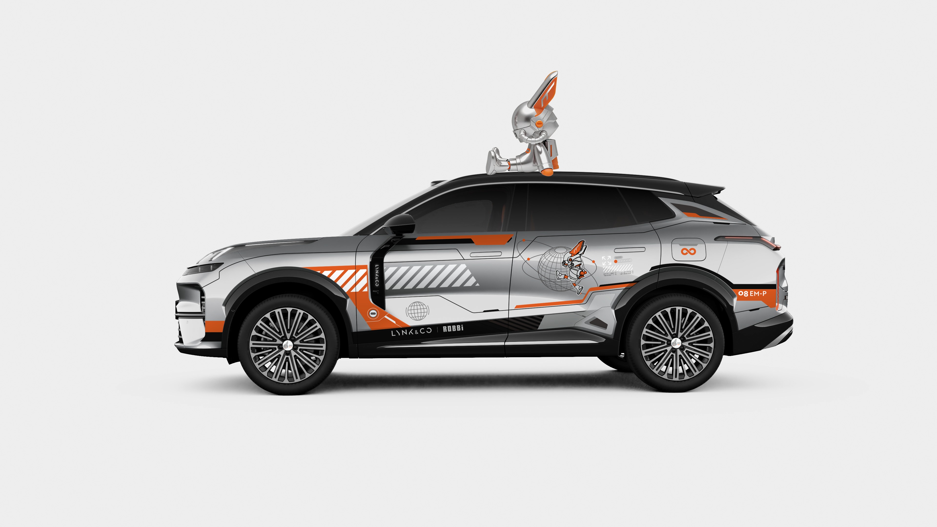 它没有走常规的堆参数、推新车的老路,而是和潮玩IP ROBBi联名,把全新领克07 EM-P碳纤维尾翼版、08 EM-P极光套装的亮相,融进了整个展台的统一表达里。车顶巨型ROBBi手办足够醒目,但真正能留住人的,从来不是这第一眼的冲击。