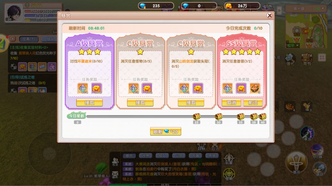 悬赏8次S加2次A稳拿一颗,公会签到和矿脉再换3颗,一周白嫖10颗不是梦
