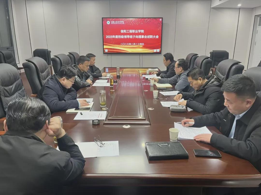 春潮涌动启新程,砥砺奋进谋发展。2月24日,信阳工程职业学院召开2025年度校级领导班子向理事会述职大会。学校理事会理事长黄红、副理事长张东斌及理事会、监事会全体成员出席会议,学校党委副书记、校长黄功学带领全体校级领导参会。会议以“总结成效、查摆不足、凝聚共识、谋划未来”为核心,全面听取年度工作汇报与履职述职,深度审议班子工作成效,围绕“三年打基础、五年创‘双高’、十年升本科”战略蓝图精准施策,为学校高质量发展注入强劲动力。