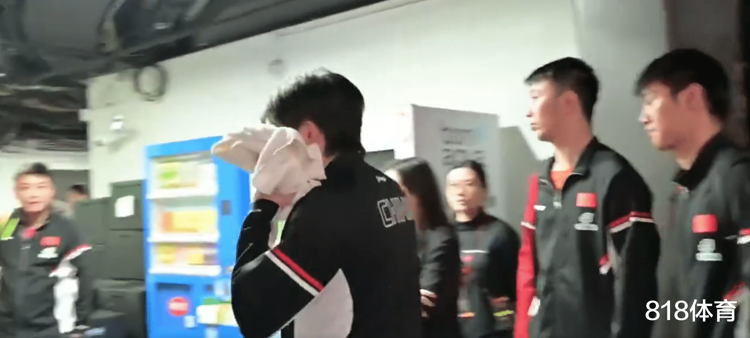 赛后,王楚钦累得气喘吁吁,一边擦汗一边走进了球员通道。而主教练王皓早已在这里等待着徒弟的到来。