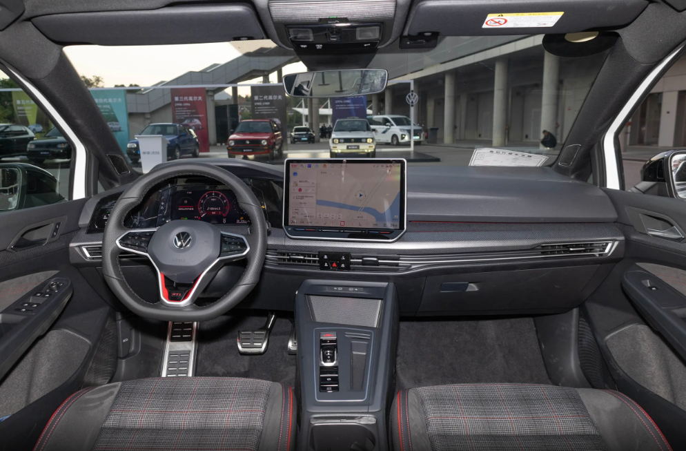 进入座舱,高尔夫GTI采用较为简约的内饰设计风格,不过在细节处,它使用较多软质材料与金属材料装饰,也能够给人较强的时尚感和运动气息。值得一提的是,高尔夫GTI的方向盘虽然采用家族化设计,“套娃”的感觉非常强,但其方向盘还增添了红色的元素点缀,能够让人感受到较强的运动感。需要大家注意的是,目前高尔夫GTI的两款在售车型中,2023款车型仅搭载10英寸的中控屏,虽然其为用户提供的智能互联功能并没有比2025款车型少多少,但给人的视觉感受和使用体验,远不如其2025款车型的表现。