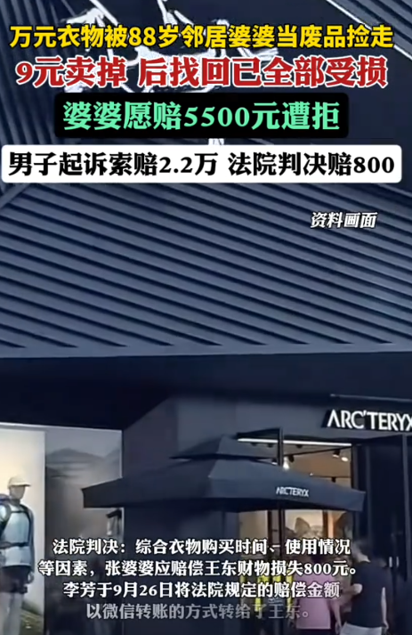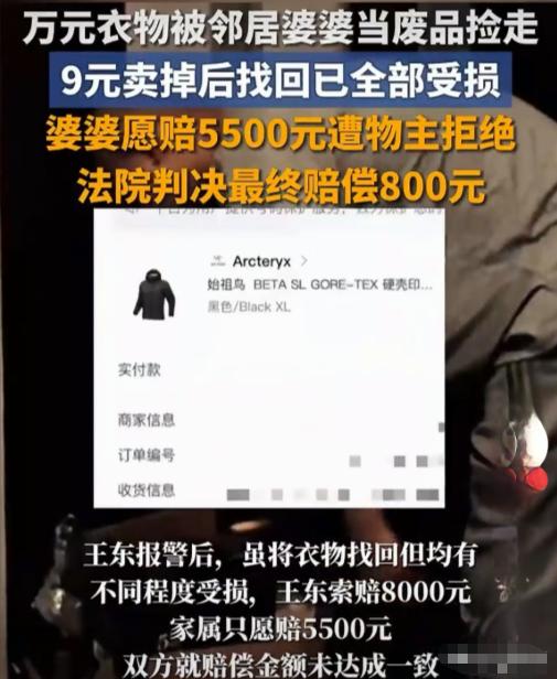 还好老人的儿媳李芳(化名)知道这事后,没想着推卸责任,赶紧跟王东联系,还带着婆婆去废品站找。运气也算好,废品站老板还没来得及把收来的旧衣运走,翻了半天,找回了 5 件衣服 —— 包括那件最贵的始祖鸟冲锋衣和裤子。可王东拿起衣服一看就急了:“你看这冲锋衣的袖口,都蹭破了;皮衣的领子也沾了灰,吊牌全没了,我这怎么寄给朋友啊?根本没法用了!”