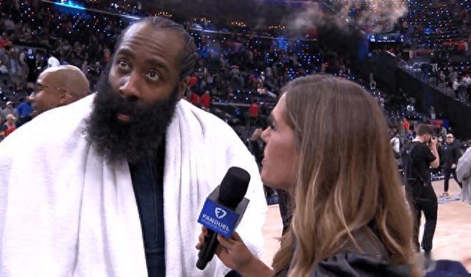 谈到狄龙的垃圾话是否让他清醒并爆发时,哈登笑着回应道:“可能吧。狄龙确实让我清醒了一点,我需要这些刺激。很高兴我们拿到了第一场胜利,未来还会有更多胜利。”