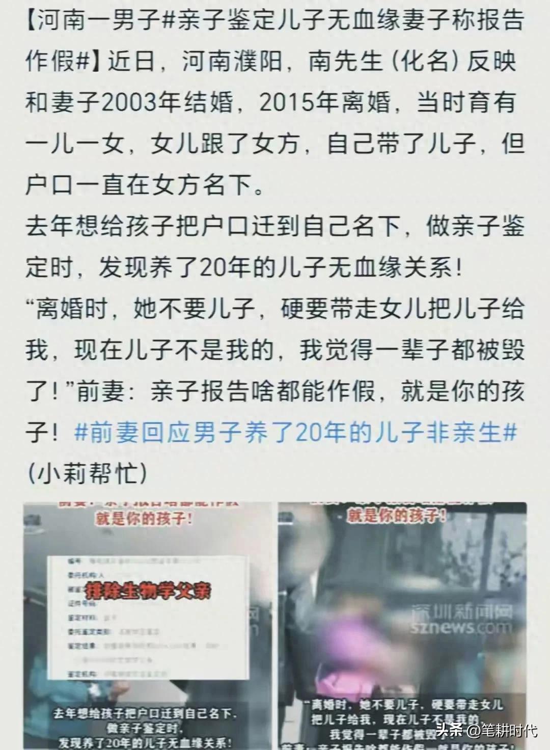 前有江西的陈先生,养了三个女儿都不是亲生的,后又传出山东的姜先生,养20 多年的孩子非亲生,如今河南的南先生,又似乎经历类似遭遇。