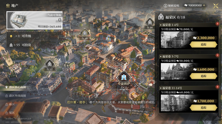 另外,《白银之城》里还加入了“地产”系统,由侦探去投资商铺,目前来看它比较偏向领取收益的放置类玩法,在正式版中是否会和更深度的“模拟经营”联系起来还不确定。