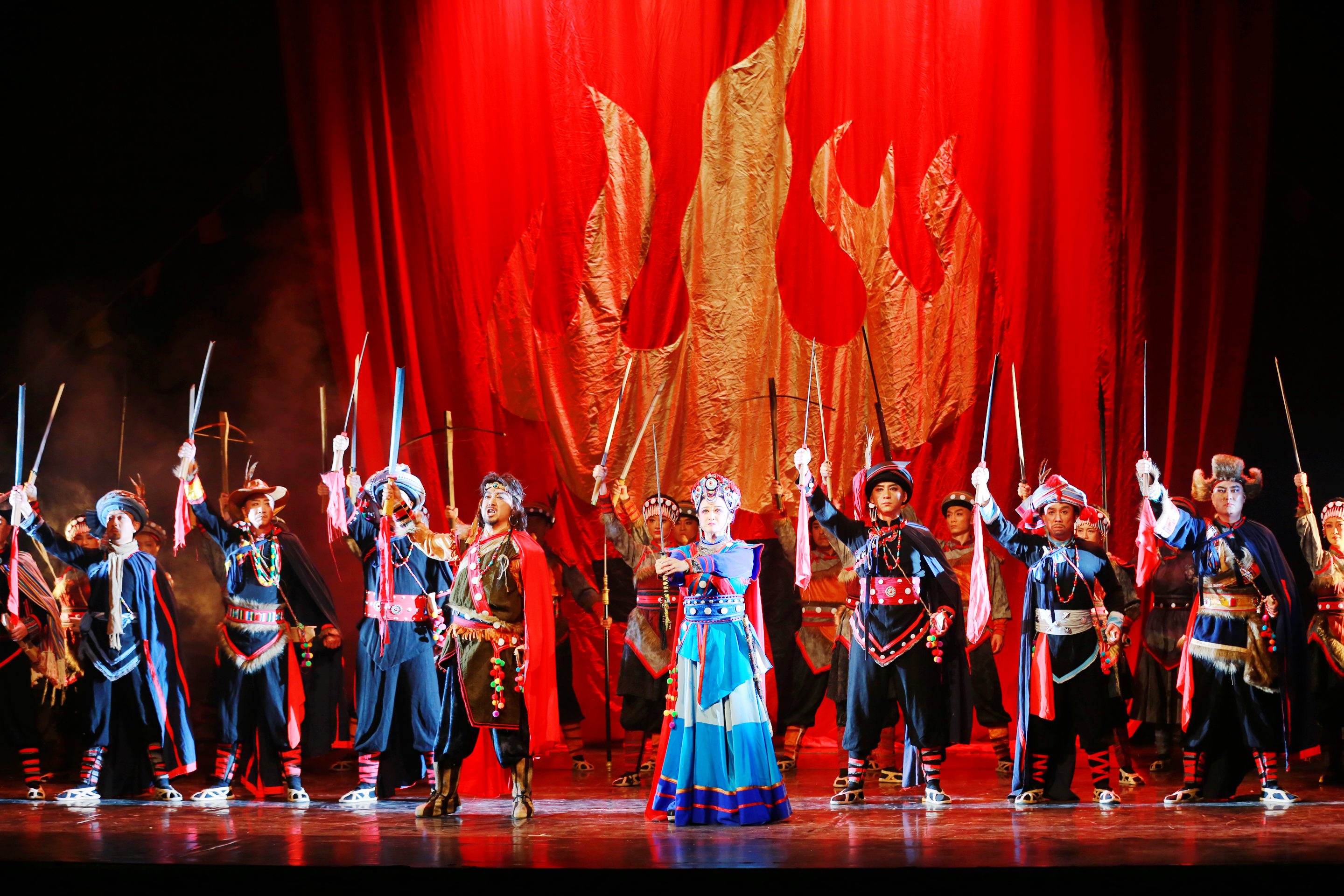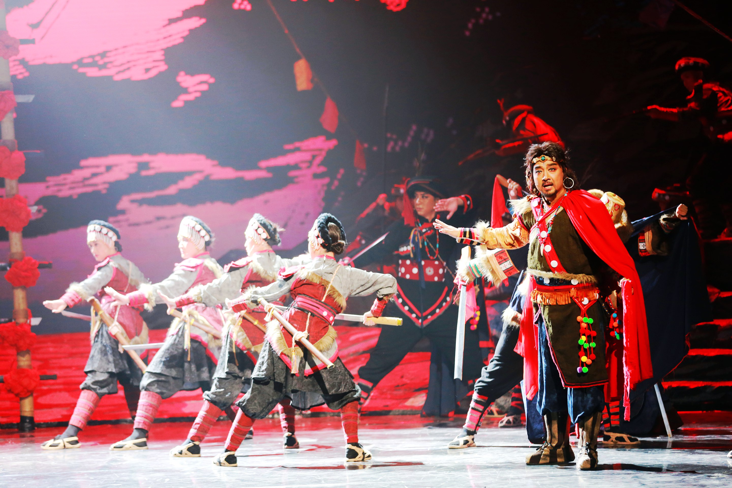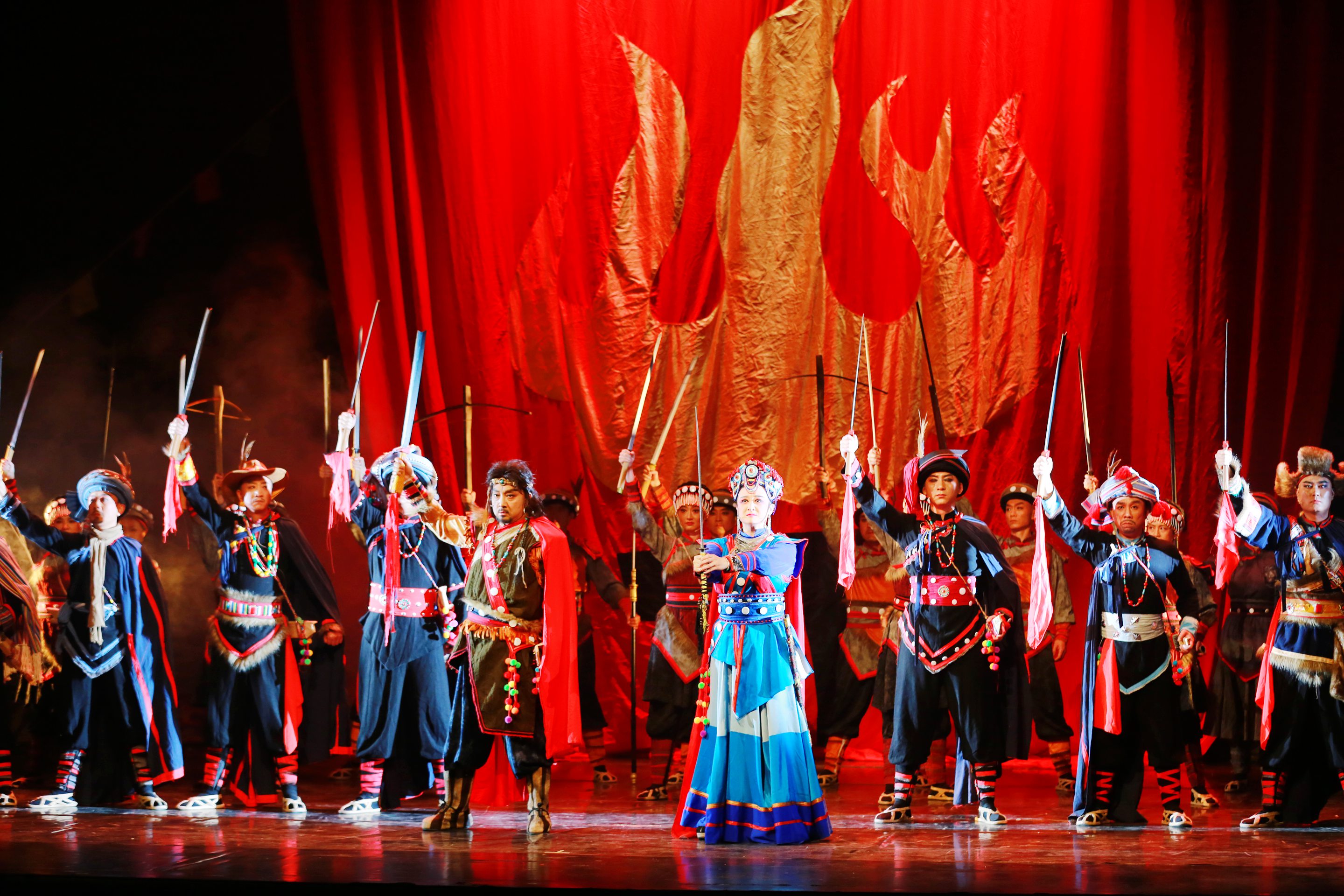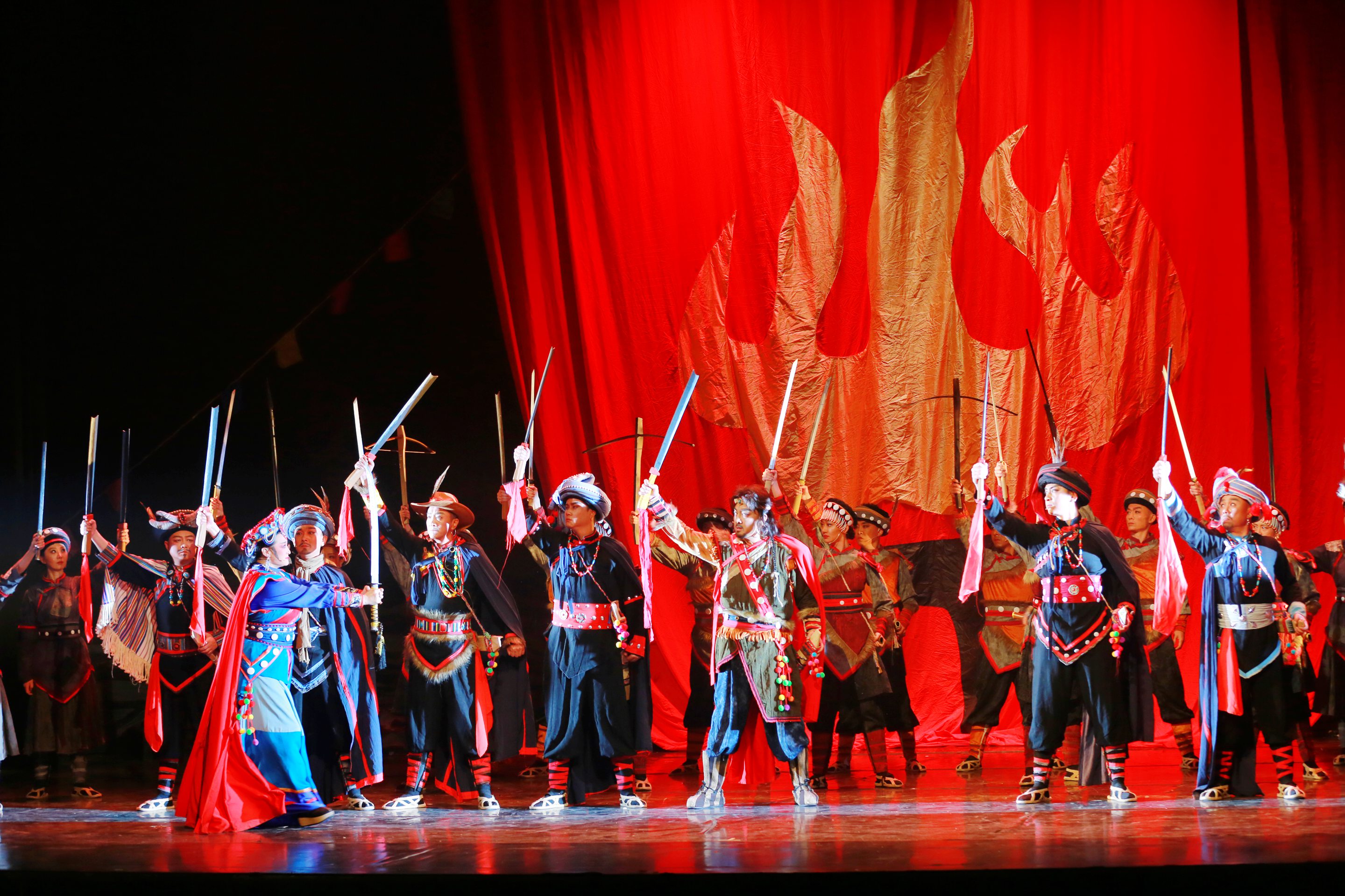 演出过程中,演员们的精彩表演赢得了现场观众的阵阵掌声。无论是黑在带领族人奋勇抗敌的激昂场景,还是各族群众之间的温情互动,都被演员们演绎得淋漓尽致。婉转的唱腔、灵动的舞蹈、跌宕的剧情,让在场参与者沉浸其中,时而为剧中人物的命运揪心,时而为民族精神的伟大动容。