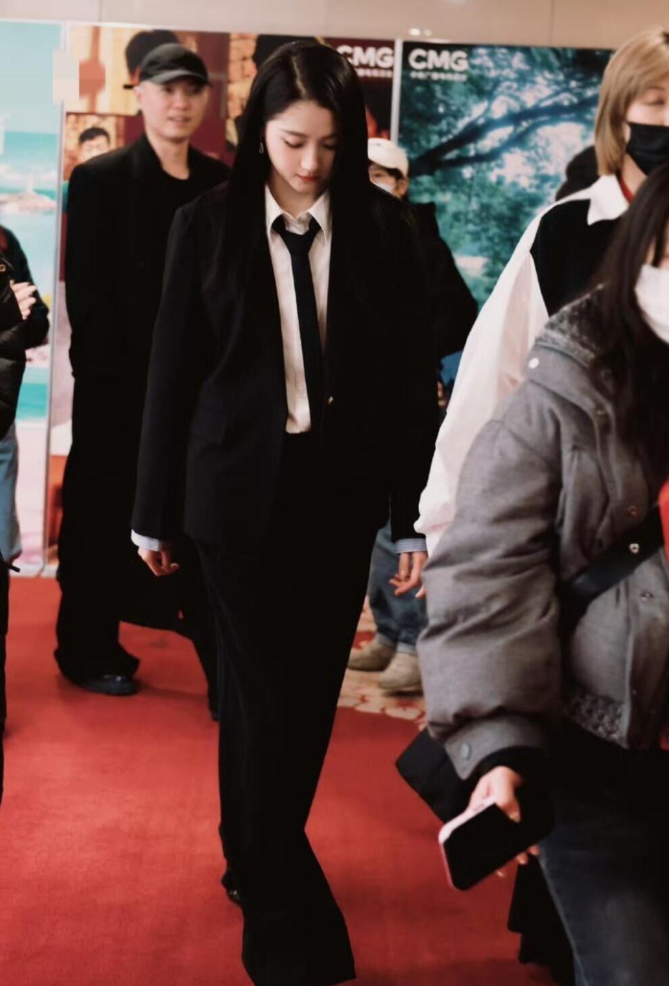 让人意外的是,她不是去“灭火”的,她是去“亮家底”的——一口气带来了三部风格迥异、将在央视播出的重磅作品。 当别人还在八卦的泥潭里打滚时,关晓彤已经用一身西装和一份沉甸甸的片单,完成了最漂亮的回应。 这身造型,甜吗? 那缕“公主切”藏着俏皮。 酷吗? 笔挺的西装和领带写着“专业”和“不好惹”。 这哪里只是一套衣服,这分明是她面对风波和审视时,最无声也最有力的宣言。