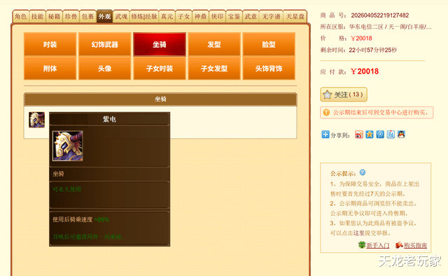 甚至还有一个永久的紫电坐骑。