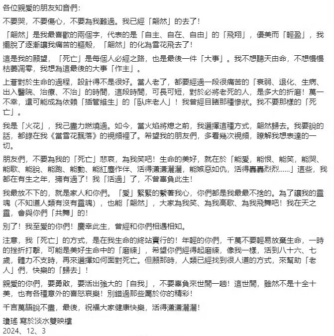 如今,琼瑶虽然离开了,但她的作品将永远流传。那些曾经在书中与荧幕上陪伴我们度过青春岁月的故事,会在岁月的长河中持续散发着光芒。她影响了一代又一代的创作者,为言情文学与影视创作留下了宝贵的财富。她的离去,让我们感慨万千,但她所创造的那个充满爱与浪漫的世界,将永远活在我们心中,成为我们缅怀这位传奇作家最好的寄托。
