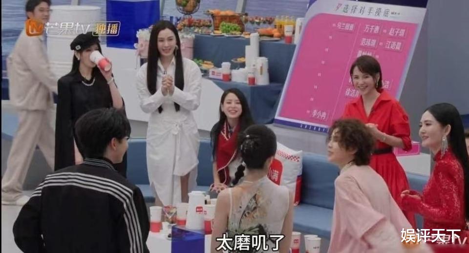 比如“乘风送考人”,这个想法本身挺有意思的,姐姐们的亲朋好友送考,又都是圈内明星,可以让观众更加全面的了解参赛姐姐的特色、性格、生活中的样貌,看明星之间熟人相见,相谈甚欢,也自成一道风景;但问题是“送考环节”前半段时间把控拉垮,每一位姐姐个人介绍+好友聊天控制在1-3分钟足矣,可前半段出场的姐姐基本上都是5、6分钟起步,有的姐姐甚至耗费将近10分钟,也难怪王濛吐槽:太磨叽了!
