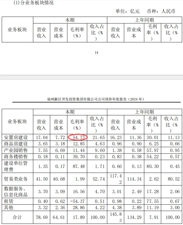 也就是说,仅安置房一项业务,2024年给福州新区集团贡献的毛利就独占66%。