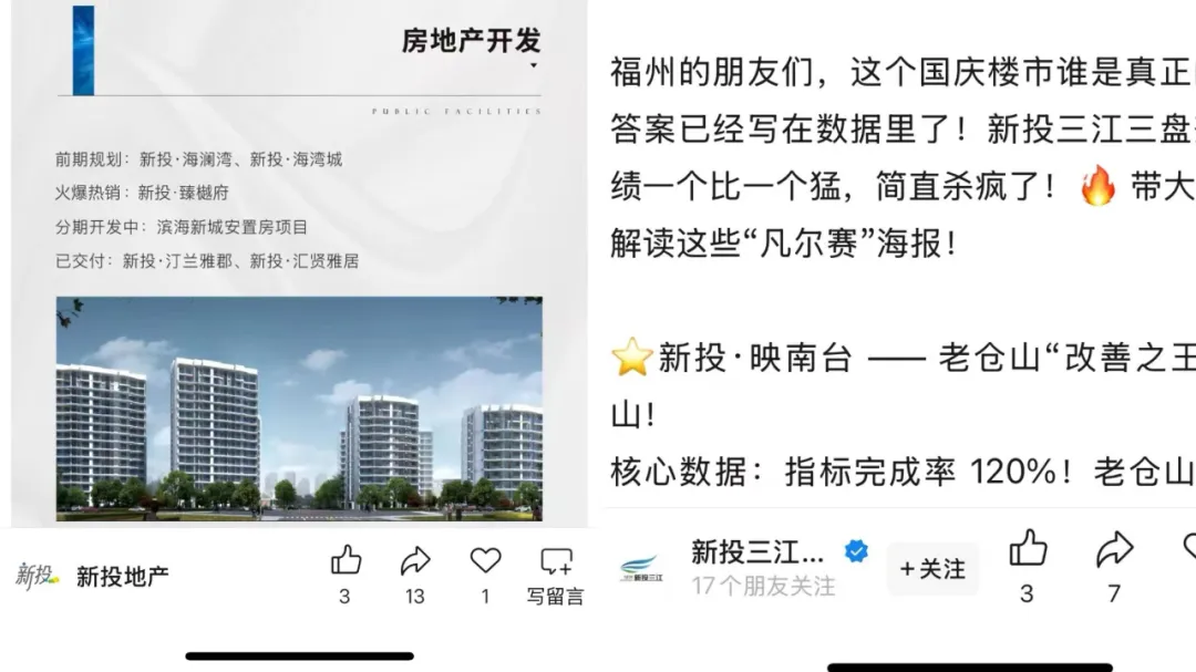 根据“说商道市”了解,福州新区集团开展房地产开发板块,主要由两家子公司承担:一即福州滨海临空开发建设有限公司(地产开发品牌:新投地产),一即福州三江口建设发展有限责任公司(地产开发品牌:新投三江)。