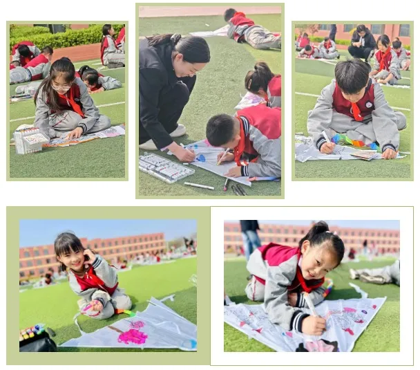 活动伊始,孩子们齐聚学校操场。平日里奔跑嬉戏的绿茵场,此刻化身为充满想象的“风筝彩绘工坊”。