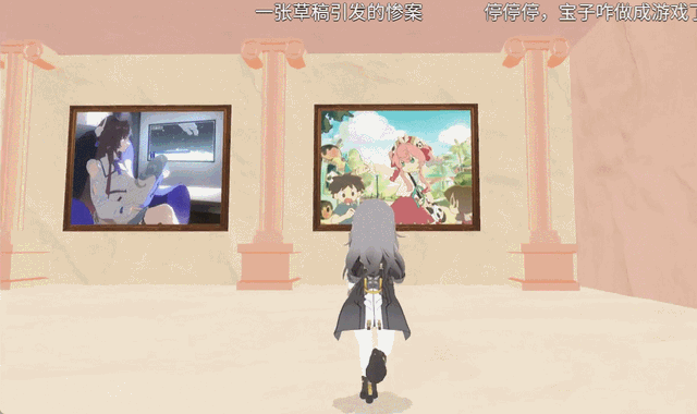 最意外的是,这还没到此次绘画接龙的上限,大型转折点接连而至。第30棒选手带来了相当还原的COS团片,31棒的大佬则开始建模,到32棒,甚至开始着手制作3D逛展游戏,将前面所有老师的素材都制作成了展品。