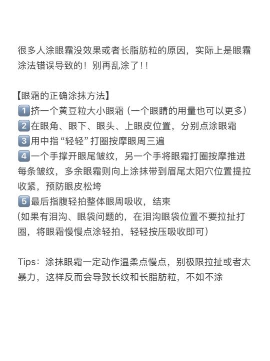 *附上眼霜正确涂法,教你把100的眼霜用出1000的效果,手法放图片中了
