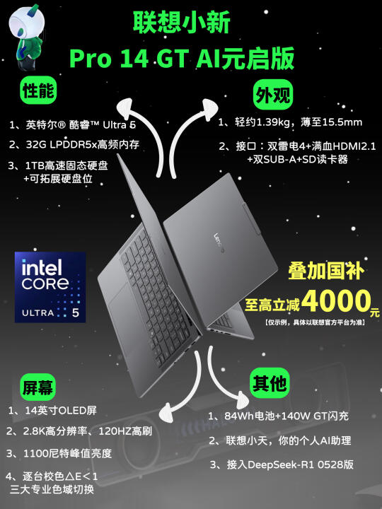 就是这台教育优惠认证不到5K猛猛拿下联想小新Pro 14 GT AI元启版