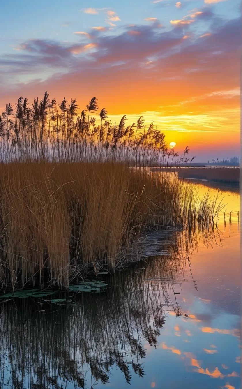 水波荡漾,芦苇摇晃。这是典型的水乡风光! 大纵湖方圆百里烟波浩淼,蓿蒲荡芦柴有名皮厚杆高。 二三百年前,大纵湖的面积还很大,与西边的射阳湖几乎连成一片。听听那些地名就知道这一带是真正的水乡。大潭湾,垛田,南莘野,北莘野,南龙港,北龙港,垫堡,泗洲庄。还有蓿蒲荡。 我们泗洲庄北面就是茫茫无边的蓿蒲荡。我小时候就听外祖父说过,蓿蒲荡里的芦柴,杆高皮厚质紧,是远近有名的盖房织蓆编箔的上好柴草。 我想出一副对联,蓿蒲荡芦柴杆高皮厚质紧。不知哪位诗词大家楹联高手能对出下联。