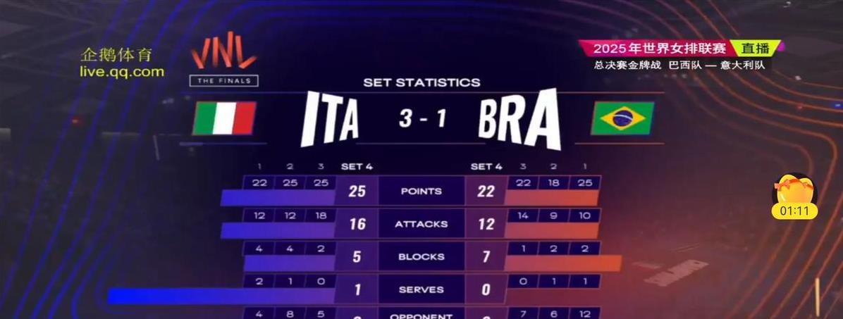 47分!埃格努打疯了 这一夜,比分牌都被她扣碎 0-1落后,全队没慌。埃格努冲到场边毛巾一甩:接着扔,别停。于是后三局,她扣疯了。巴西拦网手像被拔掉电源,眼睁睁看她47次抡臂,球全钉地板上,全场安静得只剩下球撞击地板的啪啪声。 意大利不是一个人在打。德吉纳罗翻滚21次,把看似必死的球一个个捞回来。达内西高墙一样堵死加比,7次封盖让巴西王牌直接熄火。第一局68%的一传到位率,到后面直线掉到45%,巴西队就像手机没电,瞬间黑屏。 这场逆转是缩影。意大利已连赢73场,刷新现代女排最长纪录。她们扣得快、拦得稳、还不失误,平均一局拦网就能拿4分,对手怎么玩?埃格努把时速110公里的球当子弹发,德吉纳罗靠200场国际赛的老腿在地板上游泳。新老配,正好。 巴西输得不冤,只靠加比冲不赢一整场。意大利给出新答案:速度+全面才是未来。奥运会?她们的目标写得很清楚——把银牌也换成金色。 73连胜之后,连胜才刚开始