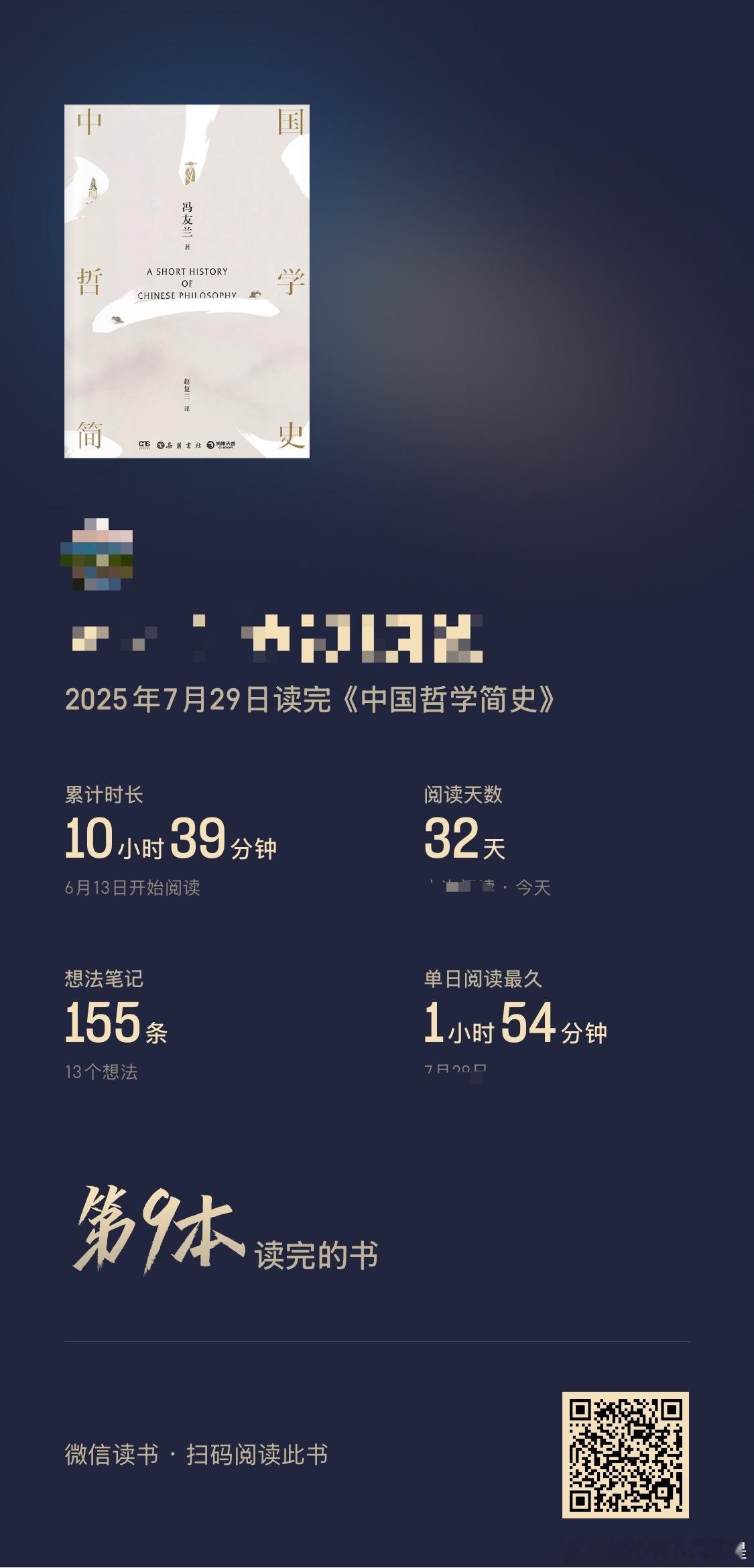 太漫长了,这本真是耗费了我太多的进度[失望]那几天也特别忙,回家还老想着放空玩一会儿,这种类型的书就有点读不进去,但总算也是没有放弃。全文很系统梳理了先秦到近代的中国哲学思想,简单易懂,虽然古文毕竟多,但逻辑清晰,重点又突出。