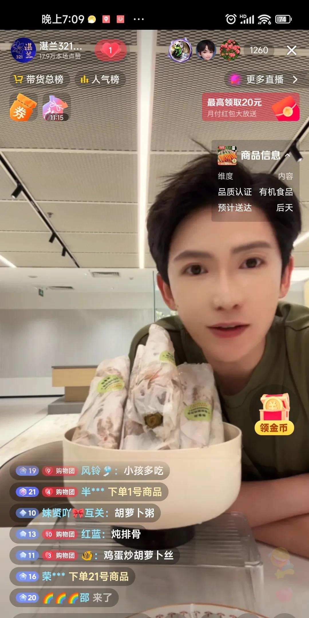 肖肖和大美丹在湛蓝321开播,在线人数不少,下单的粉丝也很多。 肖肖慢声细语地讲品,时不时地会说出几句有趣的话,逗的大家哈哈笑。 丹丹和肖肖也是老搭档了,两人配合的十分默契。 没想到,肖肖还是个“厨艺达人”,他卖有机胡萝卜,一边吃,一边说胡萝卜能做什么菜。 有的确实是有这样的吃法,有的就是肖肖大厨自己想象的黑暗料理了。 现在,肖肖、乐乐、欣欣、文文等主播,都开通了个人主播的模式,他们和老东家这边是合作关系,有需要他们随时回来帮忙。平时就自己播。 肖肖特别忙,他和很多大品牌都有合作,今天,肖肖是特意回湛蓝直播间播专场的。粉丝们看到肖肖都特别开心,纷纷发评论欢迎他,给他送礼物。 期待他们几小只再次团聚,合体直播!