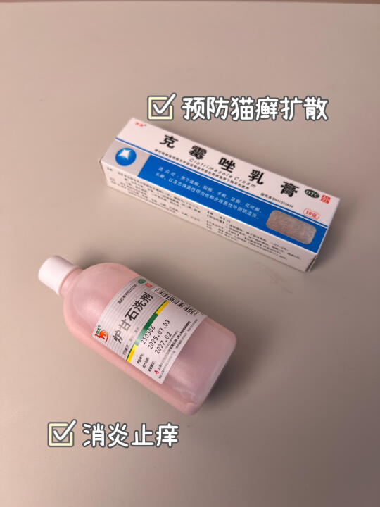 之前发现崽崽耳朵后面秃了一小块,还有皮屑,我心都揪起来了!😭 带去检查果然是猫癣…那段日子真是折腾,涂药(碘伏擦完涂克霉唑)、戴圈、消毒,天天提心吊胆怕扩散,更怕传染给我。