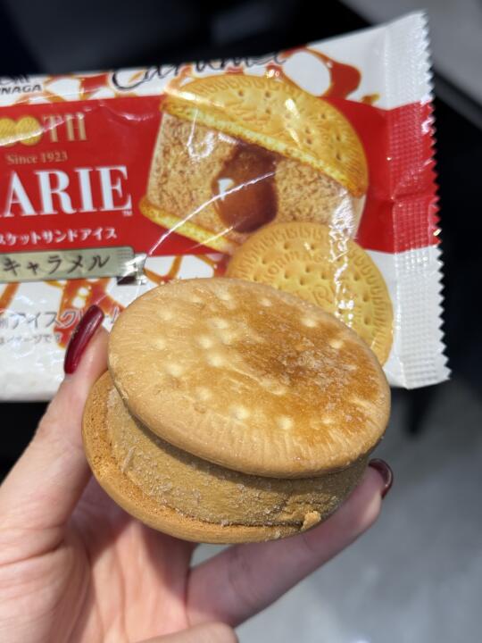 焦糖饼干冰淇淋诶!!!中间真的有焦糖夹心 一口咬下去先是软香的饼干然后是焦糖味很浓的冰淇淋再是焦糖夹心