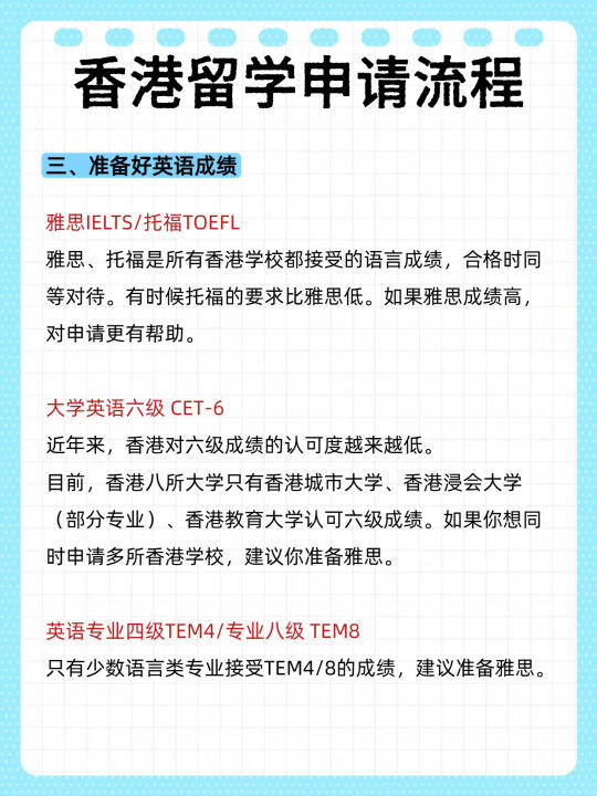 ✅ 语言成绩:雅思/托福/六级(仅部分院校接受)