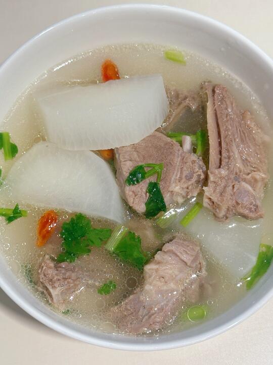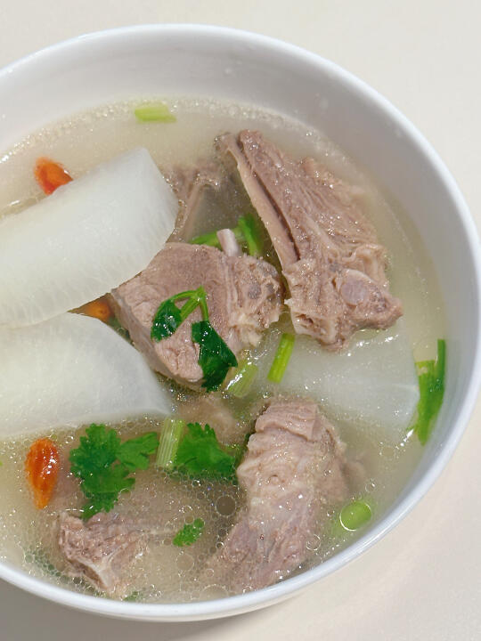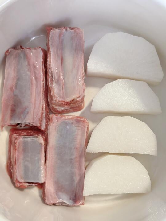 4️⃣白萝卜去皮切块,放入汤锅继续炖煮半小时