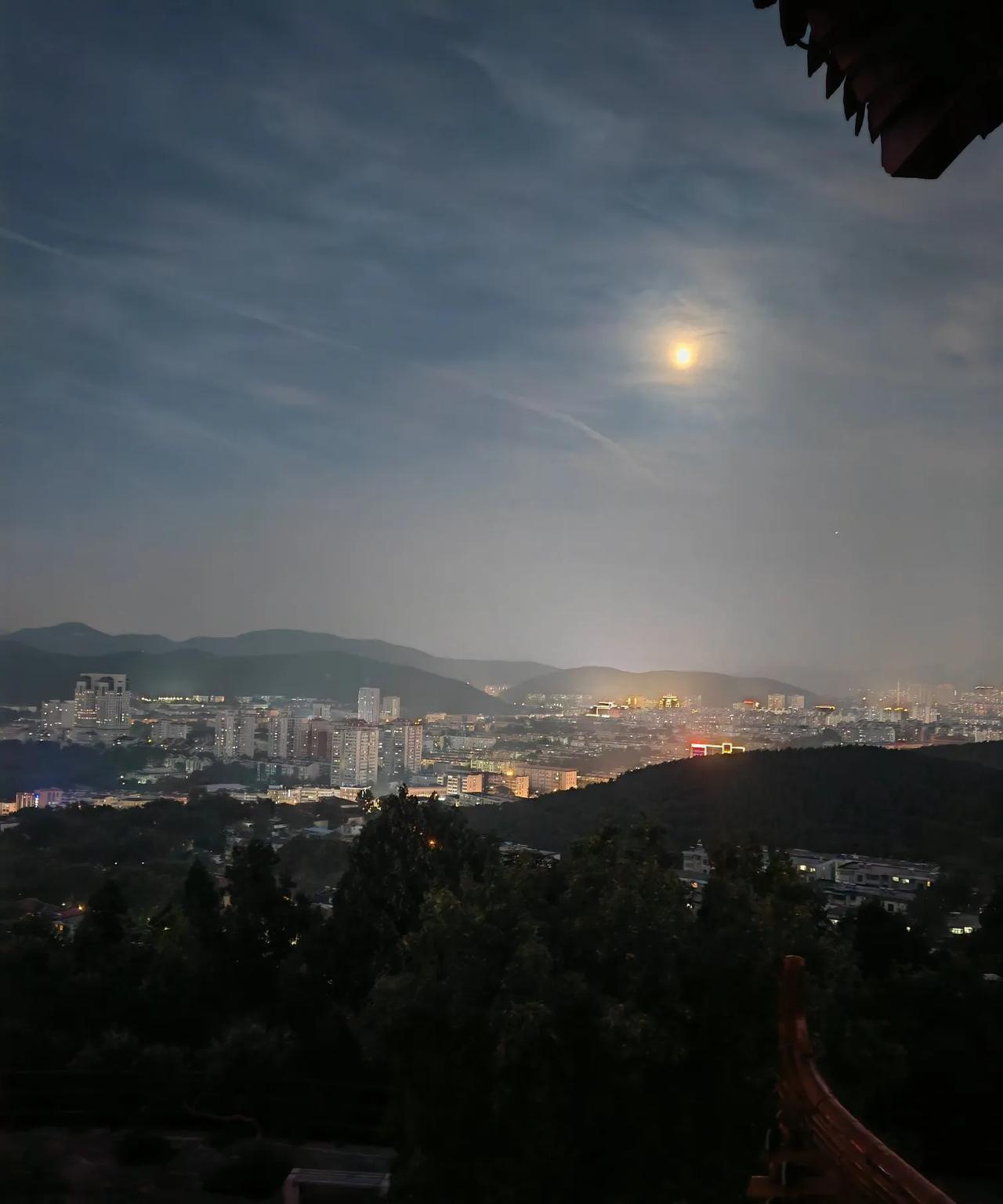 最后的晚霞和夜景 今天是这个夏天最后一天了。白天太热,不想出门。傍晚上山,有了点小风,就不感觉太闷热难受。山野有雾,看不很清楚。在英雄山东边的瞻英阁上,拍下了今年夏天最后的晚霞。又到了五里山赤霞阁上,观看这个夏天最后的夜景。济南一到立秋,就会有早晚凉。这个特点今晚就体现出来了。阁上凉风习习,非常舒服。脱下汗水湿透的薄衫,让风直接到吹到后背前胸,真正是沁人肺腑。阁上还没有蚊子。可惜没有灯光。