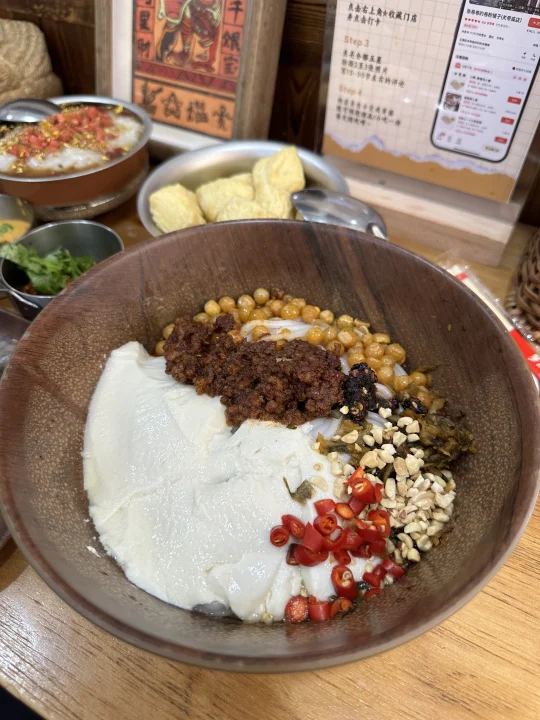 朋友直呼新乡物价太亲民!卷粉卷 价格更卷[笑哭R][笑哭R][笑哭R] 豆花米线是清爽挂的,嗦粉无负担 份量很多 小卷粉强推香菇和三鲜馅,蘸着料超香 豆腐里面很嫩,自带豆香 - 解腻的也绝——冰稀饭清甜爽口,冰粉滑溜溜透心凉 玫瑰奶白酒最惊喜,玫瑰香混着奶香,一口就爱上~