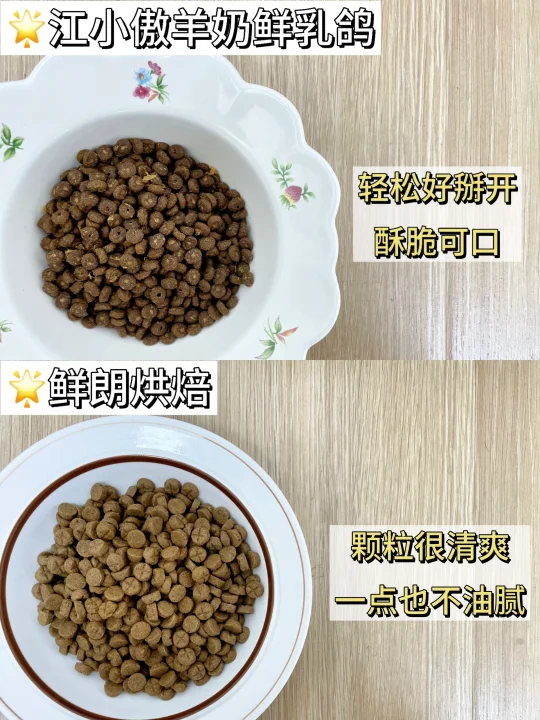 ✅江小傲羊奶鲜乳鸽:虽然是膨化粮,但和烘焙粮一样酥脆,很轻松就能掰开。