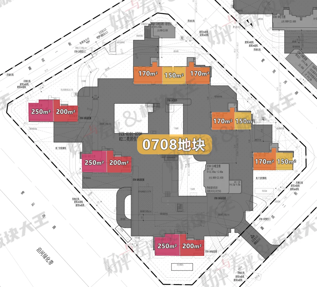 08 地块为 130-250 平米大平层,定位高端改善,集规划与景观优势。临河 3 栋楼预计 7 万 / 平,不临河 3 栋约 6.3-6.5 万 / 平,价差明显。