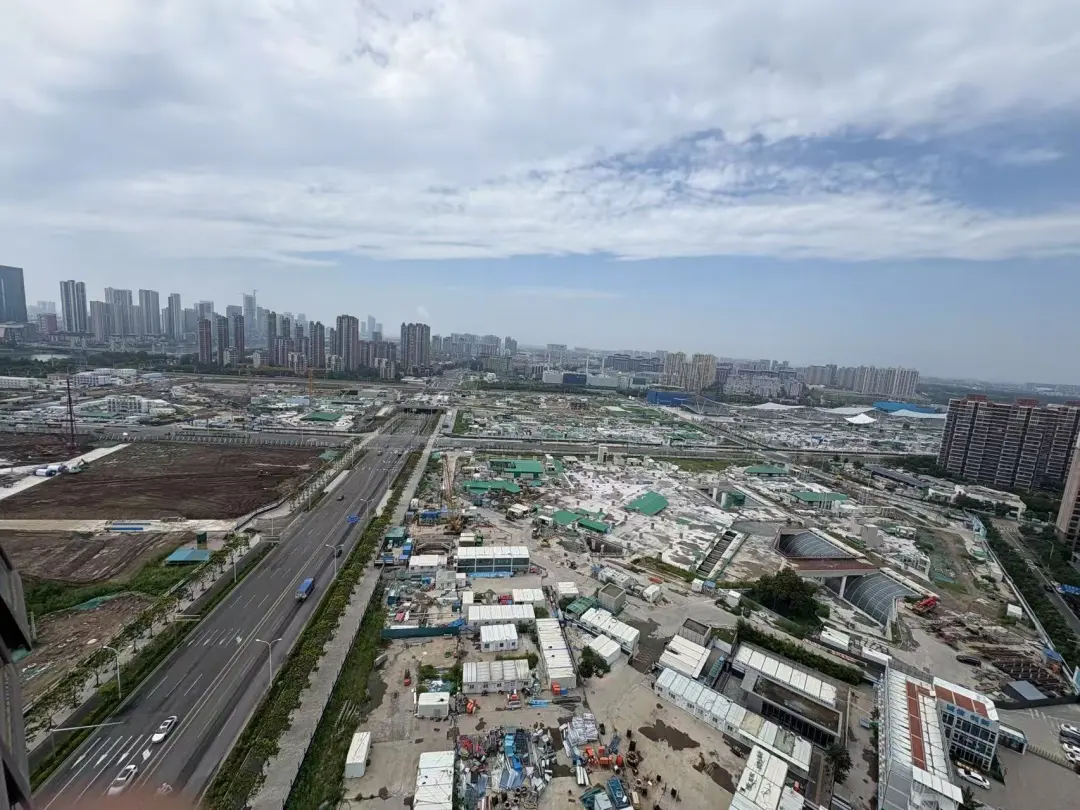 北边成熟但界面杂乱拥挤,南侧属规划先行区,新建住宅和工地为主,道路已修通,未来板块界面会更优。