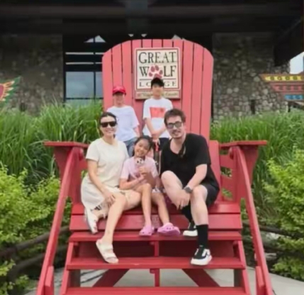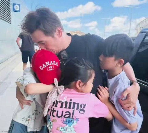 陈豪一家五口欢乐出游,陈茵媺不舍老公回港工作,相拥告别显恩爱。