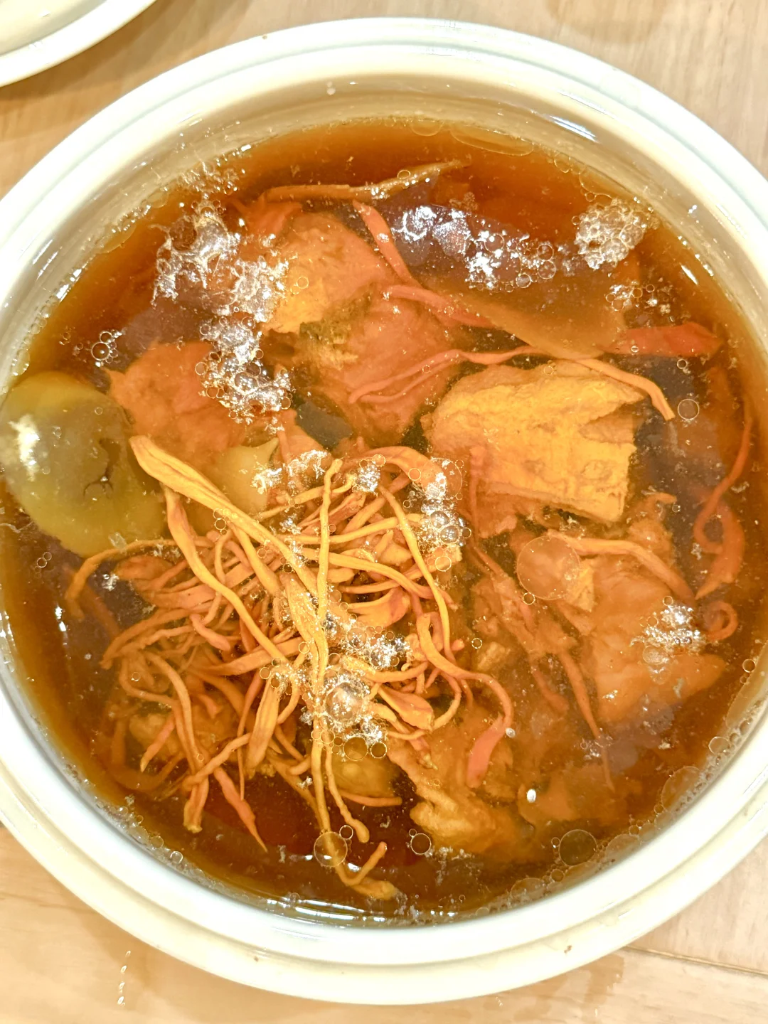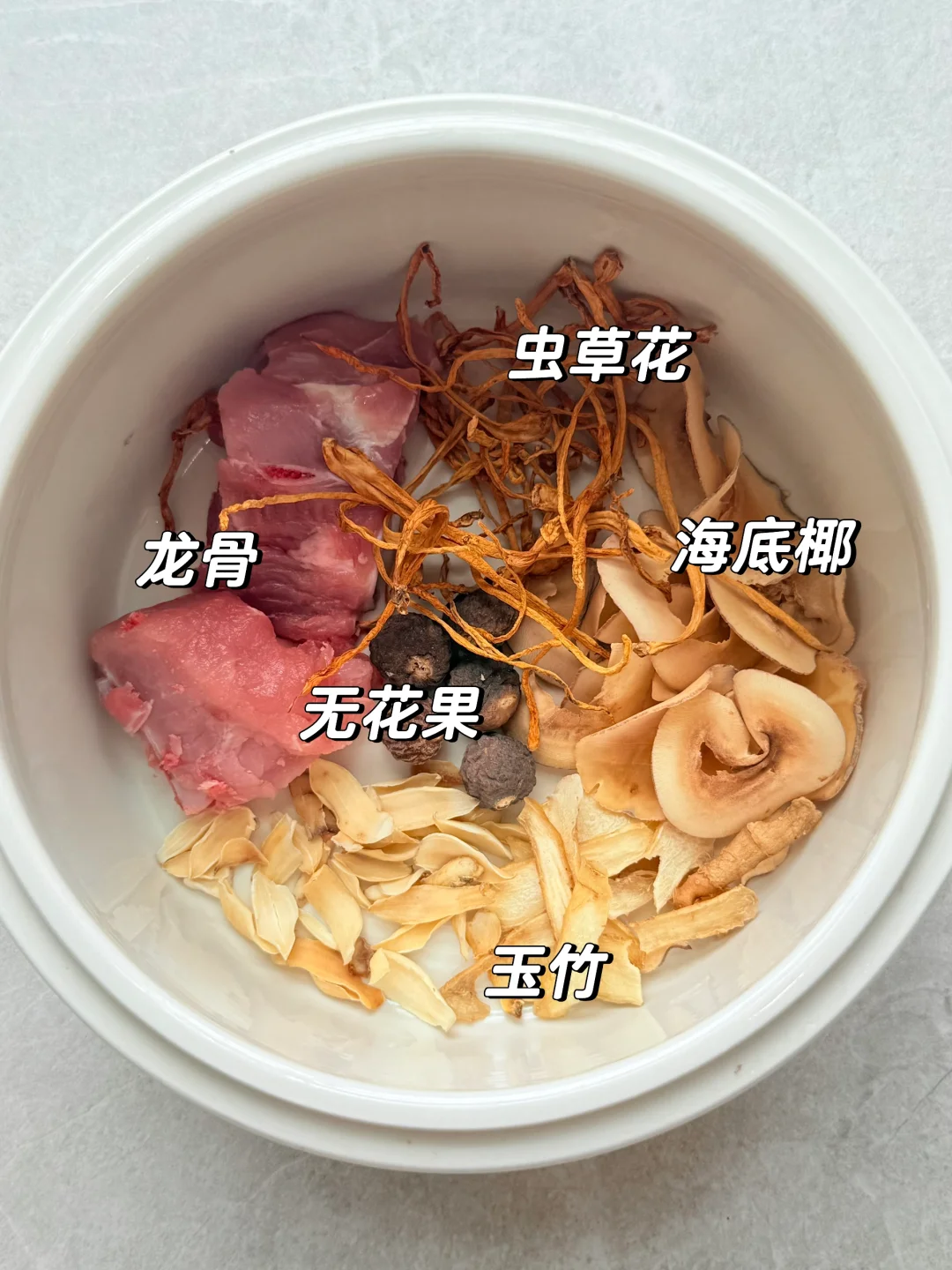 秋天第一碗汤来啦🥣滋阴润燥,降🔥润肺,化痰止咳[鼓掌R]很适合秋季滋补[赞R] 海底椰搭配玉竹和无花果,口感清甜,带着一点淡淡的椰香,非常好喝开胃[哇R] 经常熬夜的,吃夜宵的也很适合来上一碗![点赞R] 🉐做法:龙骨焯水后加入海底椰,玉竹,无花果,虫草花一起煲1小时,出锅加盐调味即可