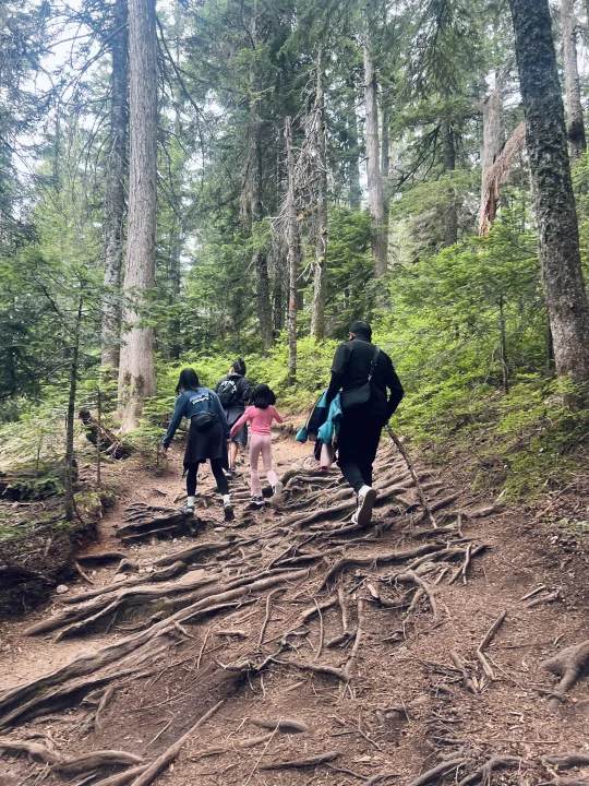 先去徒步爬山消耗娃儿们体力