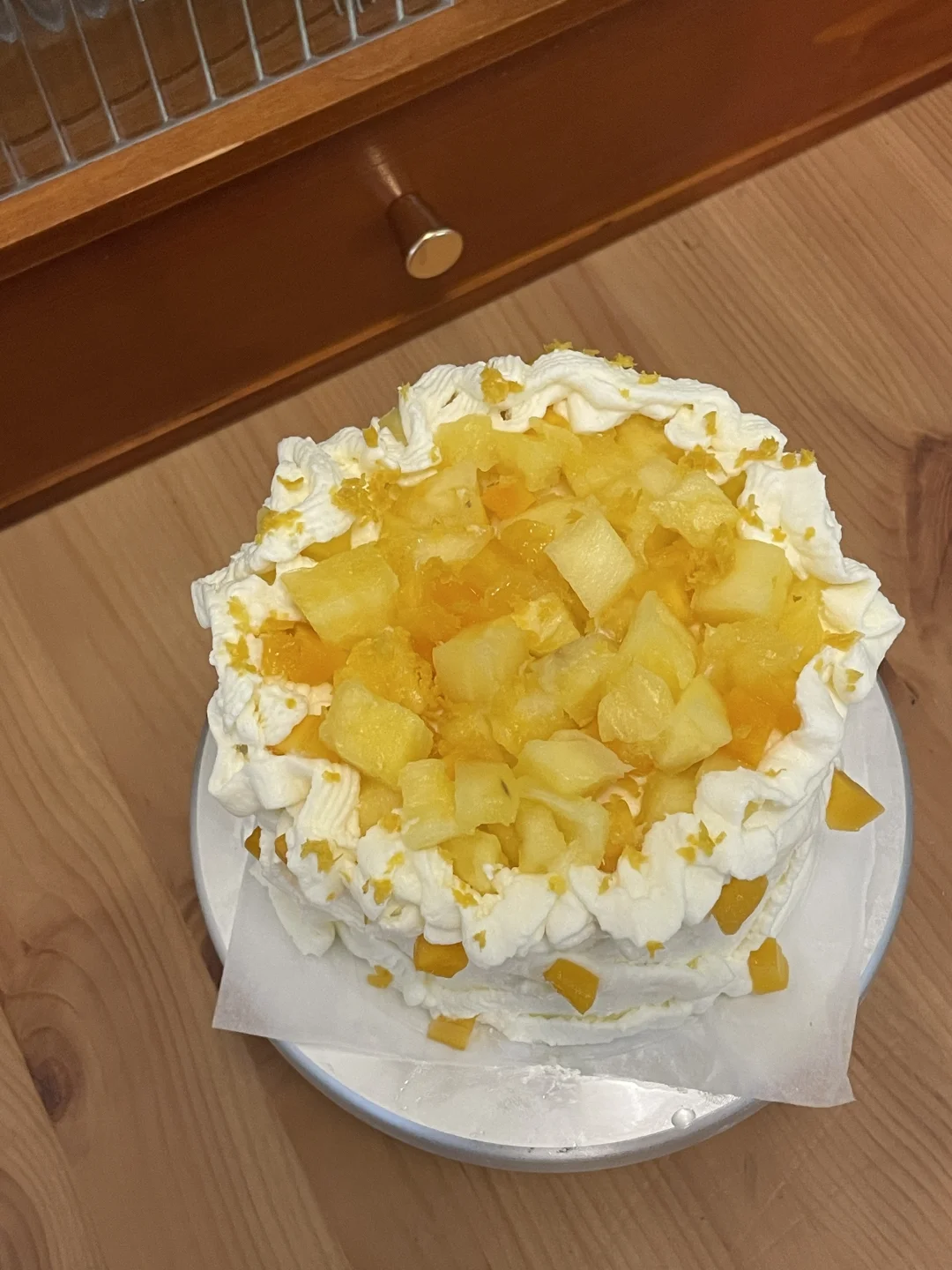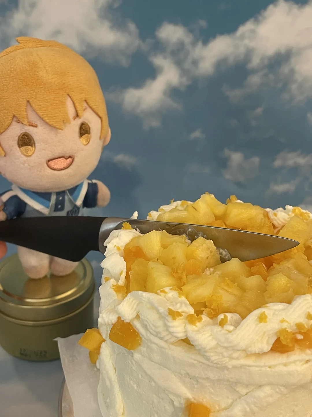 え?うそ?用这个背景布拍照的我不会是天才吧 掐指一算给小黄过的第十一个生日了🥳我儿永远勇敢锋利自由快乐! 蛋糕是自己做的,原味戚风配了柠檬慕斯/菠萝酱夹心,topping是菠萝/芒果干/柠檬皮屑,抹面和裱花水平很差不要审判我🧎♀️