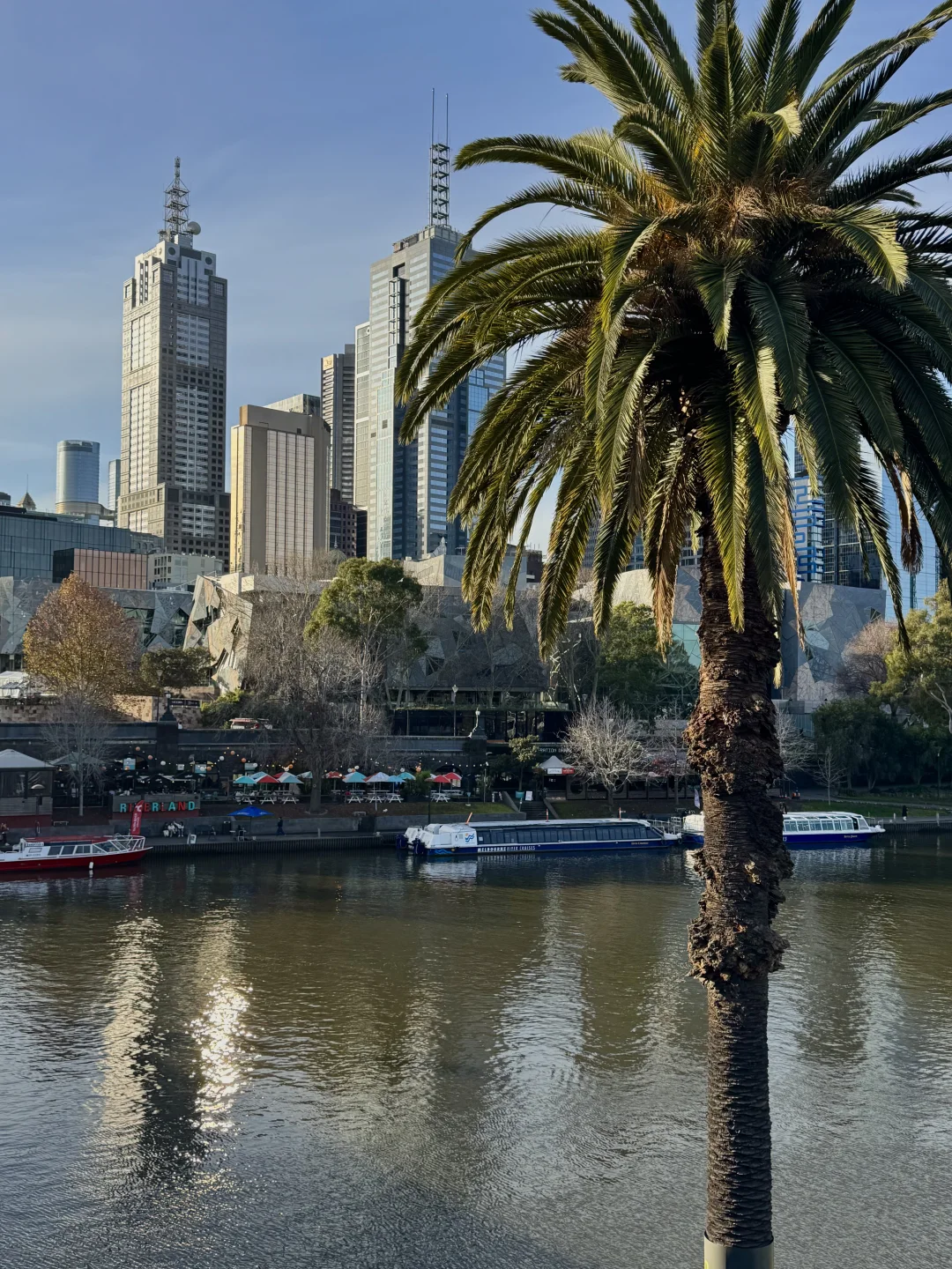 在墨尔本阳光超级好的一天☀️ 在雅拉河边看街头艺人表演吹奏 美美晒太阳太舒服了😌 希望澳洲的冬季可以多一点晴天