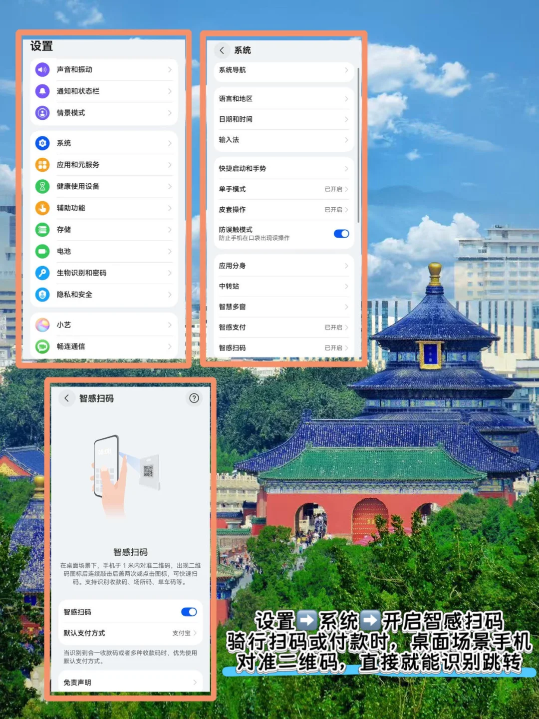 🚴骑行:共享单车很方便,鸿蒙的智感扫码更方便,不用打开应用,手机对准二维码就能自动识别跳转~
