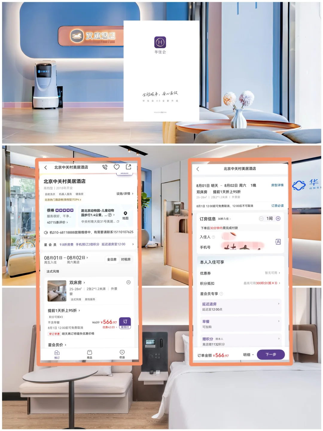 🏨住宿:提前定好酒店,华住会还能使用积分升级房间
