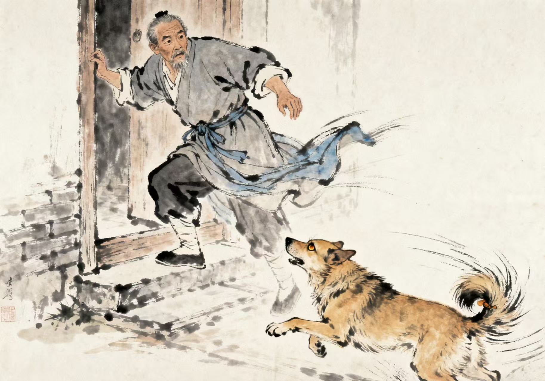 老栓也觉得稀奇,弯腰想摸摸它的头,没成想手刚伸过去,老黄狗突然往前一扑,一口咬住了他的裤腿。不是真咬,牙没使劲,却拽得死死的,任凭老栓怎么掰都不松口。
