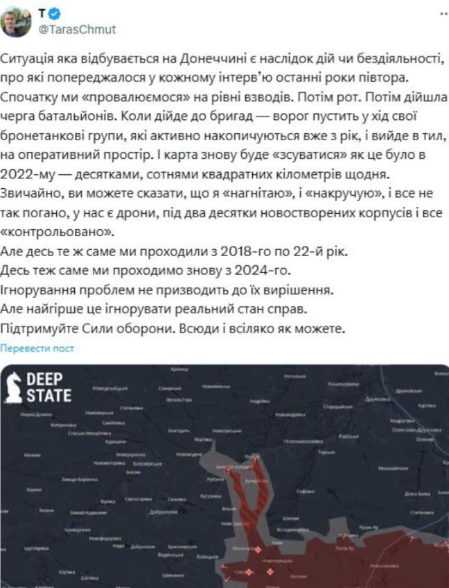 这是过去两年里都不曾出现的场景,有乌克兰所谓志愿者,也就是帮助乌军筹备武器装备的那些人,他们对前线的情况比较了解,所以开始不断地发声警告乌克兰有关部门、政客和支持者们,乌克兰前线部队已经开始出现以营为单位崩溃的危险情况。