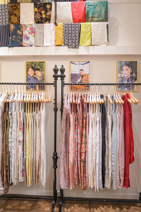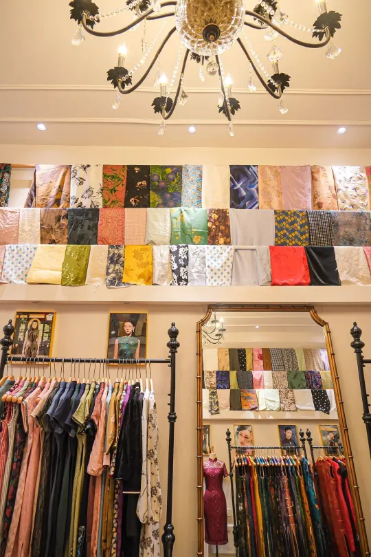 最jue的是能自己挑面料!从丝滑的缎面到透气的棉麻,上千块料子摆在那,像个小型面料博物馆👀 包边、扣子都能DIY,完全不怕撞衫~