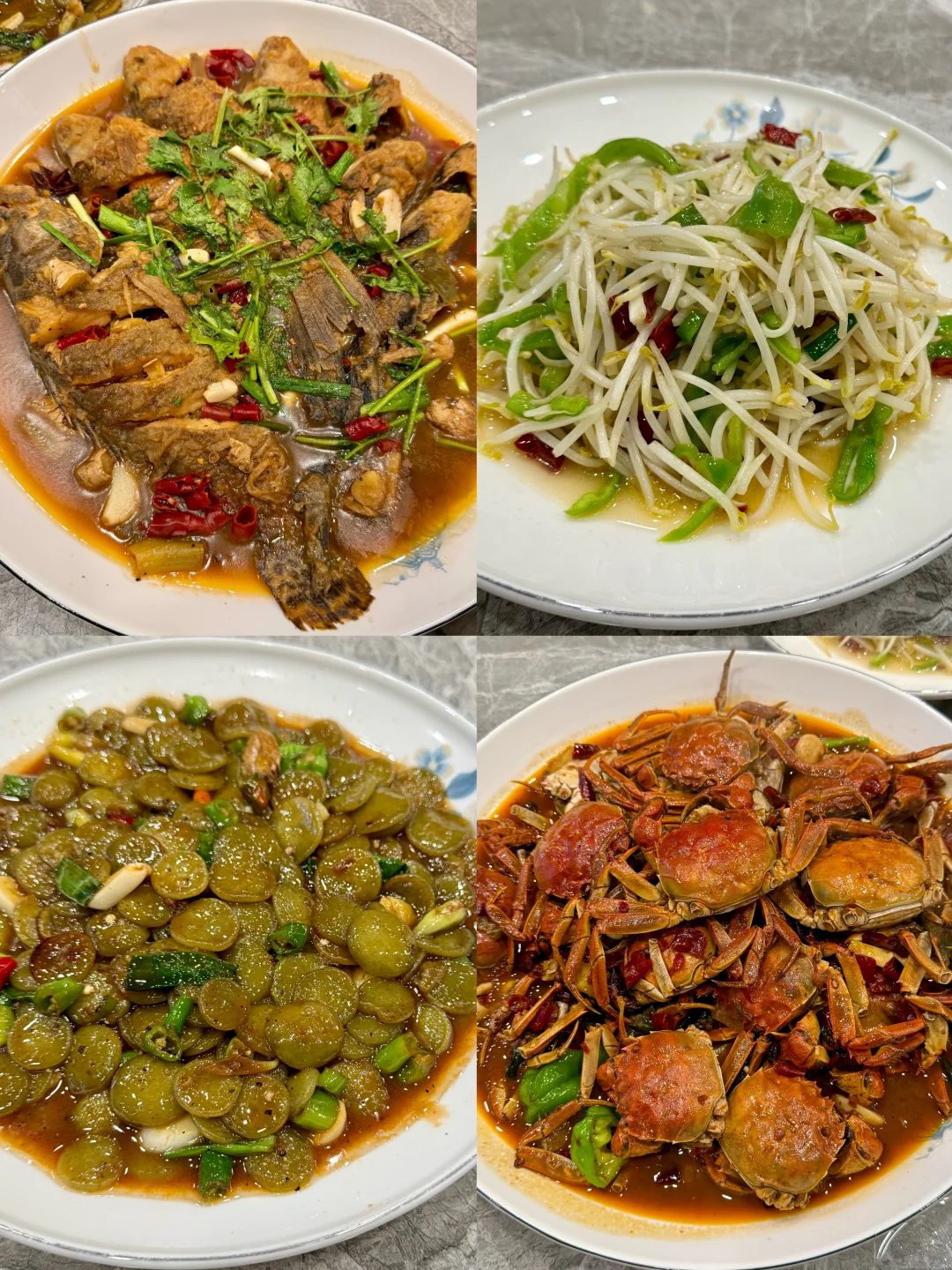 推荐杂鱼贴饼 香辣蟹 炒豆芽 小豆饼