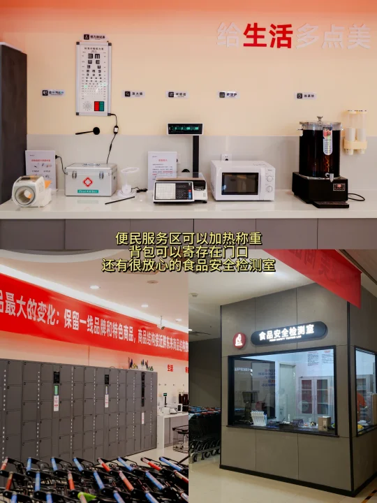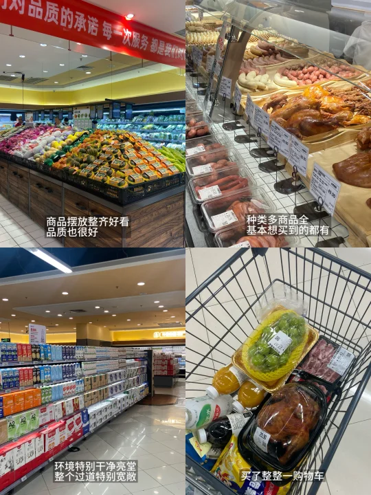 从外头往里走感觉过道都很宽敞,原来是2米的过道现在拓宽到了4米,购物时候稍微宽敞一些,完全不拥挤,整个环境都挺不错的,购物完出来的时候看到门口还有一个专门设立的食品安全检测室,买的东西有保障还挺让人放心,买了一购物车的东西,回家做饭吃去啦!